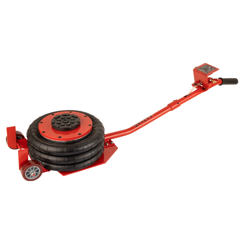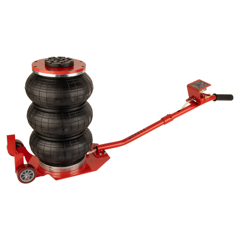 Пневматический подкатной домкрат WiederKraft WDK-81813B грузоподъемностью 3000 кг. Оснащен эргономичной прорезиненной ручкой и колесами для легкого перемещения в рабочем пространстве. При помощи пневматического домкрата можно вывешивать колёса легковых автомобилей, микроавтобусов и легких грузовиков без приложения физических усилий оператором. При этом обеспечиваются плавность хода при подъеме (опускании) груза и точная регулировка высоты подъема. Конструкция домкрата позволяет поднимать автомобили с небольшим дорожным просветом. Высота домкрата позволяет применять его для подъёма практически всех легковых автомобилей. Домкрат не нуждается в техническом обслуживании, прост в использовании, очень устойчив благодаря внутреннему телескопическому цилиндру. Подключение к воздушной магистрали осуществляется при помощи быстросъемного фитинга. Сжатый воздух можно подавать как напрямую с компрессора, так и по магистрали, которая имеется в крупных автосервисах и СТО.