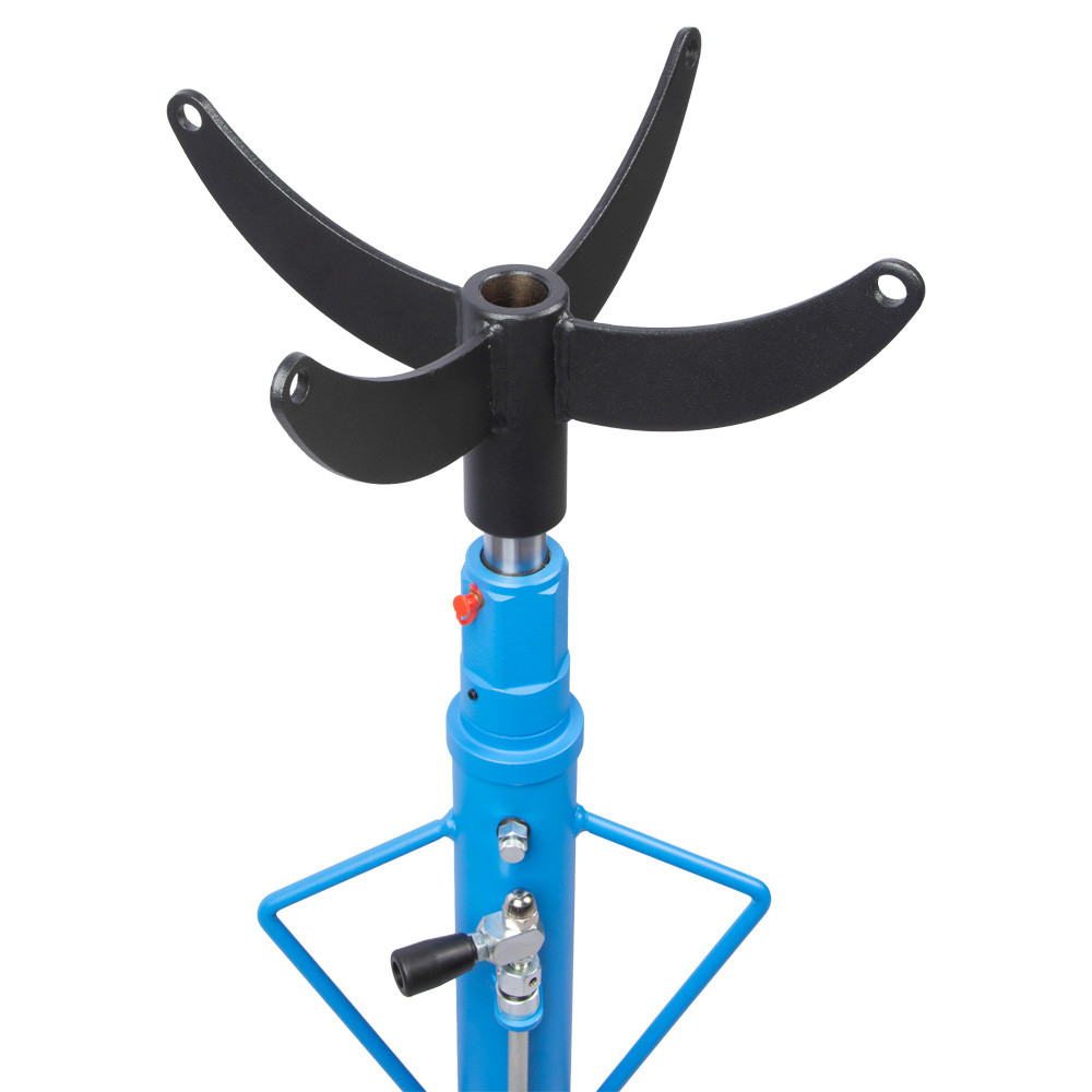 Гидравлическая трансмиссионная стойка OPTIMUS OPT-165K грузоподъемностью 500 кг. Используется в автосервисах, СТО и мастерских для ремонта трансмиссий, коробок передач и прочих систем автомобиля. Обладает высокой мобильностью благодаря ручкам и поворотным колёсам. Управление осуществляется с помощью ножной педали (подъем) и рукоятки выключения (опускание). Скорость опускания контролируется с помощью рукоятки. Ножная педаль повышает удобство и скорость работы, освобождает руки мастера. Благодаря встроенному клапану перегрузки повышается безопасность работ, проводимых на высоте от 1075 мм до 1890 мм. Рабочая платформа мобильна, её можно заменить на стол для трансмиссионной стойки по мере необходимости.