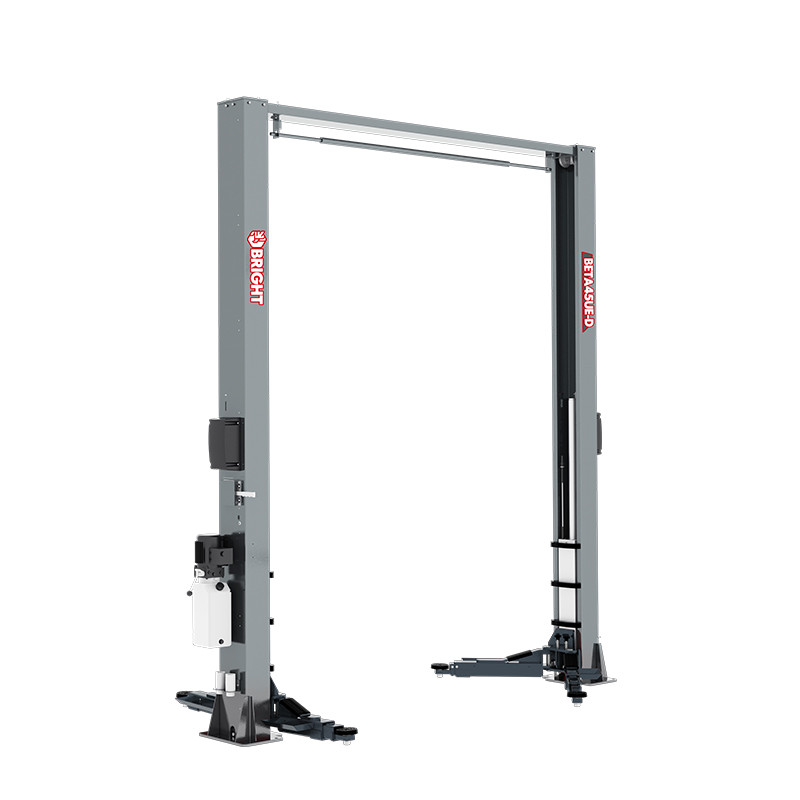 BETA 45UE-D, Подъемник двухстоечный, электрогидравлический, 4.5 т. Комплектация с ручной системой разблокировки стопоров, управление разблокировкой с одной колонны. Верхняя синхронизация хода кареток. Симметричное расположение колонн высотой 3940 мм. Рекомендуемая высота потолка 4000 мм. Цвет серый, RAL7016/RAL7040.
