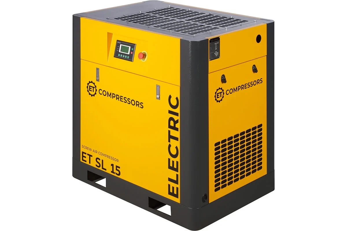 Винтовые компрессоры ET-Compressors серии SL - это стационарные маслонаполненные винтовые компрессоры, которые оборудованы микропроцессорной системой управления и контроля, имеют закрытый звукопоглощающий кожух. В компрессорах реализована система прямого привода без редуктора, электродвигатель с высоким КПД и эргономичный корпус.