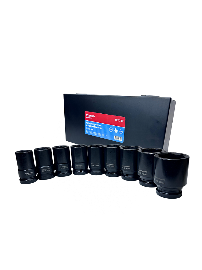 В набор входят ударные головки 27 мм, 30 мм, 32 мм, 33 мм, 36 мм, 38 мм, 41 мм, 46 мм, 50 мм.