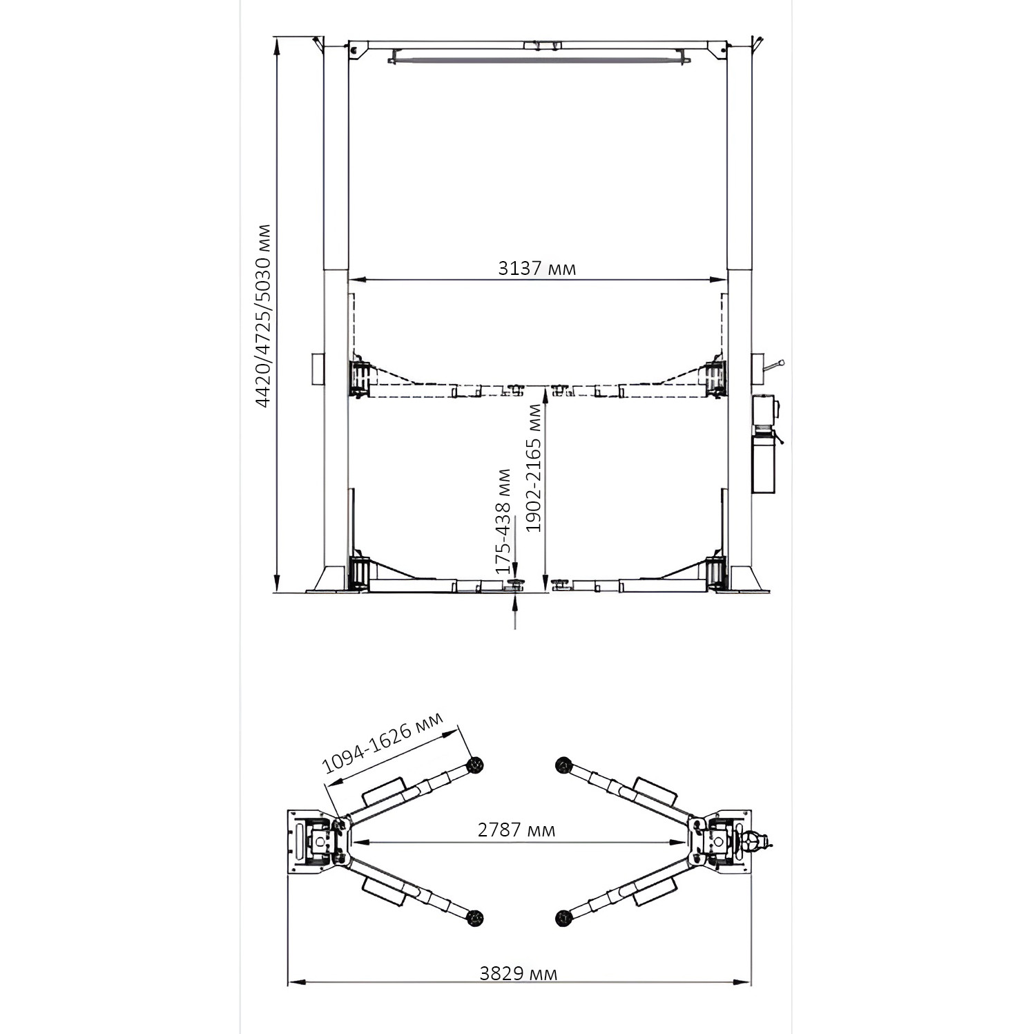 - Верхний Автоматический ограничитель подъема лап.