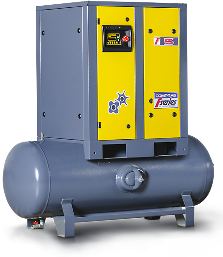Исполнение FR на ресивере. Стальной горизонтальный накопитель хранит постоянный запас сжатой воздушной массы, поддерживает стабильное давление в пневмолинии. При эксплуатации компрессора с ресивером сокращается количество циклов пуска/остановки двигателя. Это значительно снижает износ силового агрегата, роторного блока и приводного ремня. Модель Comprag FR – оптимальный выбор для объектов с неравномерным воздушным расходом и несколькими потребителями.
