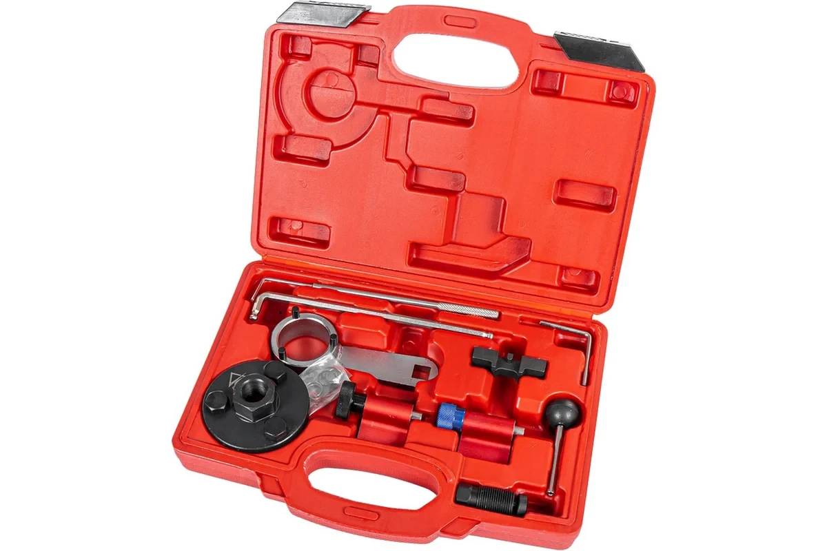 Профессиональный набор Arnezi R7702133 предназначен для точной установки фаз газораспределительного механизма на дизельных двигателях VAG 1.6 TDI и 2.0 TDI. Комплект включает все необходимые инструменты для правильного позиционирования распредвалов, ТНВД и коленчатого вала при замене ремня ГРМ, что гарантирует безупречную работу двигателя после обслуживания.