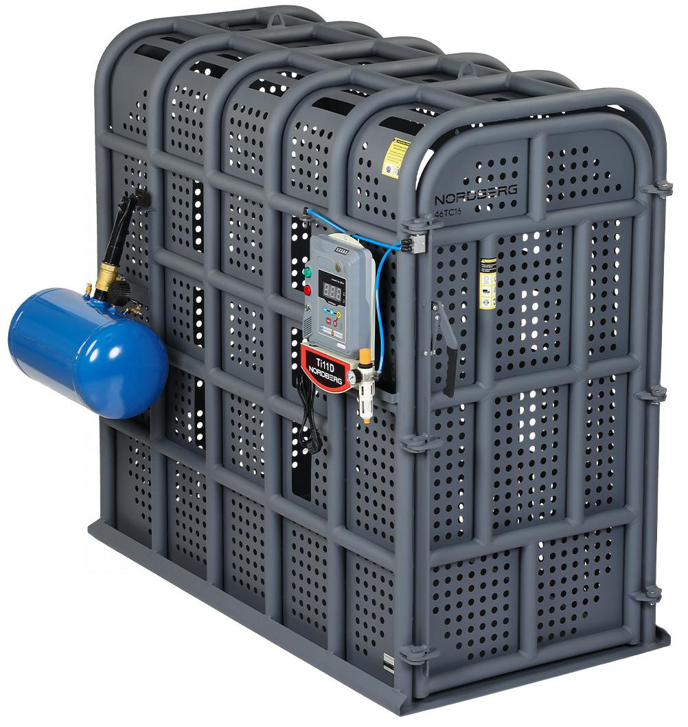 NORDBERG 46TC16 — предназначена для безопасной накачки шин грузовых автомобилей, автобусов, сельскохозяйственной и строительной техники. Основное назначение — защита оператора от травм при возможном взрыве шины в процессе накачивания.