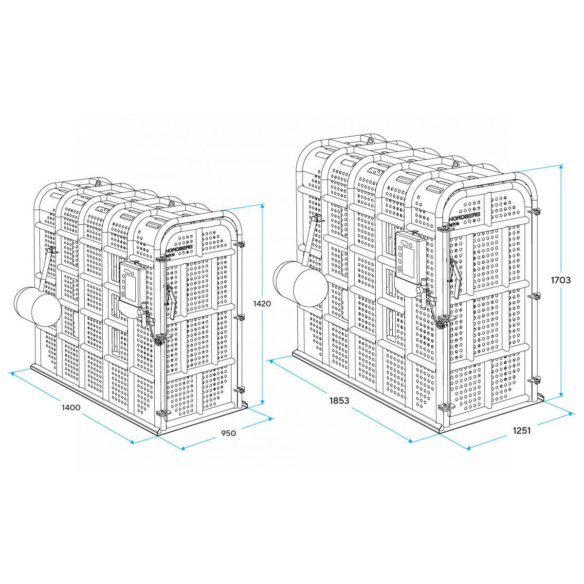 - Технологические отверстия в стенках усиленной конструкции — позволяют подключать оборудование и выполнять работы с колесом без открытия клетки;