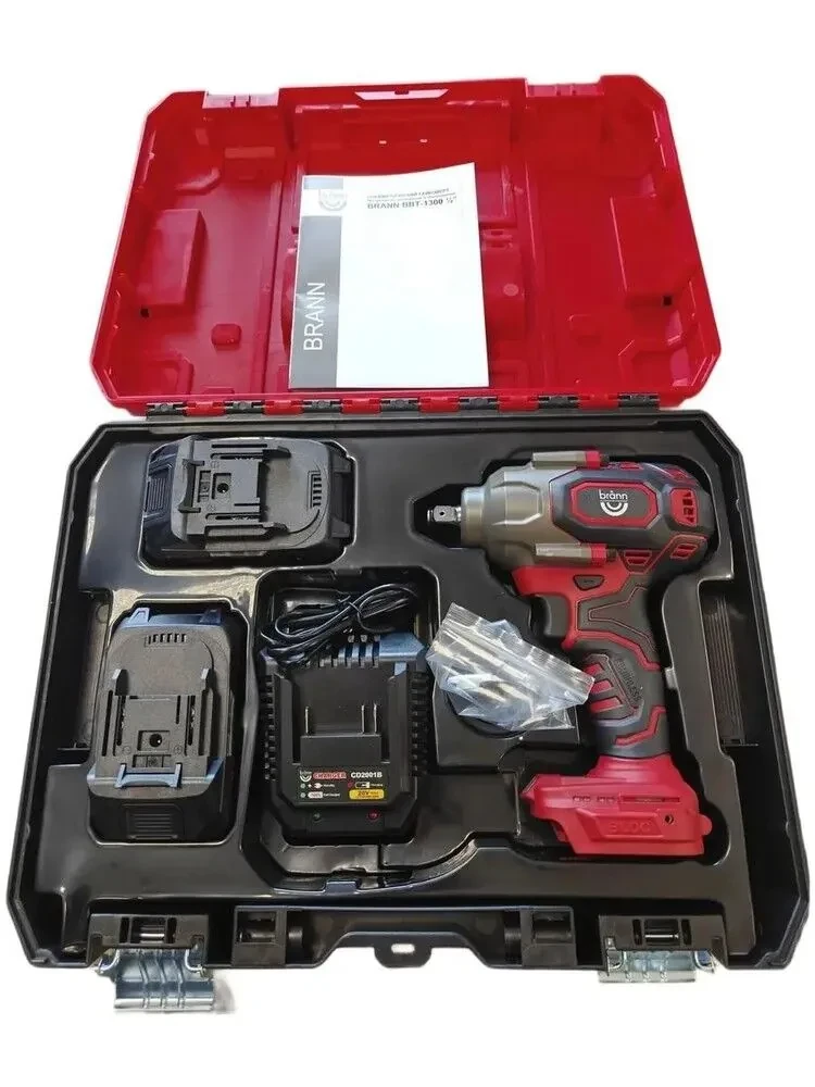 Гайковерт ударный аккумуляторный BRANN бесщеточный (профессиональный для шиномонтажный работ), с фонариком, 5 режимов работы. 1/2", 1300 Н/М, 2200 ударов в минуту, 2400 об/мин, с двумя аккумуляторами 21V. 6A/h. и зарядным устройством, в кейсе. Вес 2,7 кг.