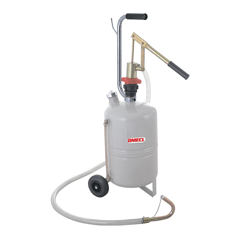 Установка с ручным насосом и ёмкостью DMECL T706024, для подачи масла и сходных материалов на колёсах, для удобства транспортировки. Благодаря насосу двойного действия подача жидкости осуществляет быстро и непрерывным потоком. Подходит для высоковязких масел до SAE 240. Ёмкость бака 24л. Подача 220 гр. за один цикл рычага. Шланг подачи 2 метра. Цвет RAL7016 (темно-серый).