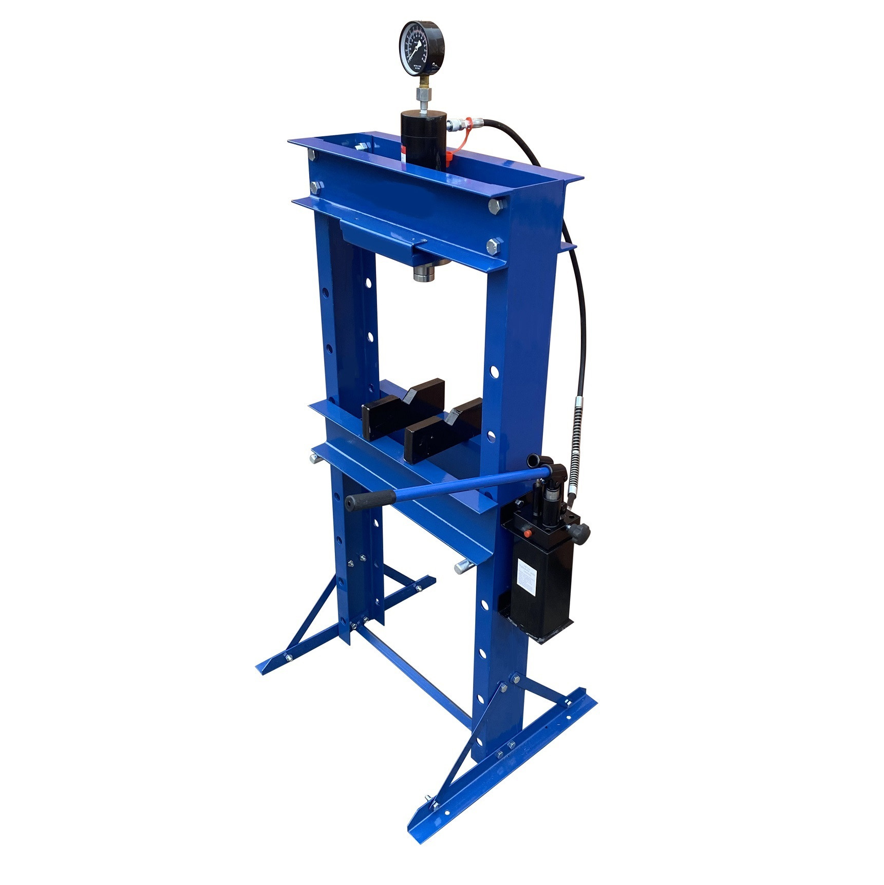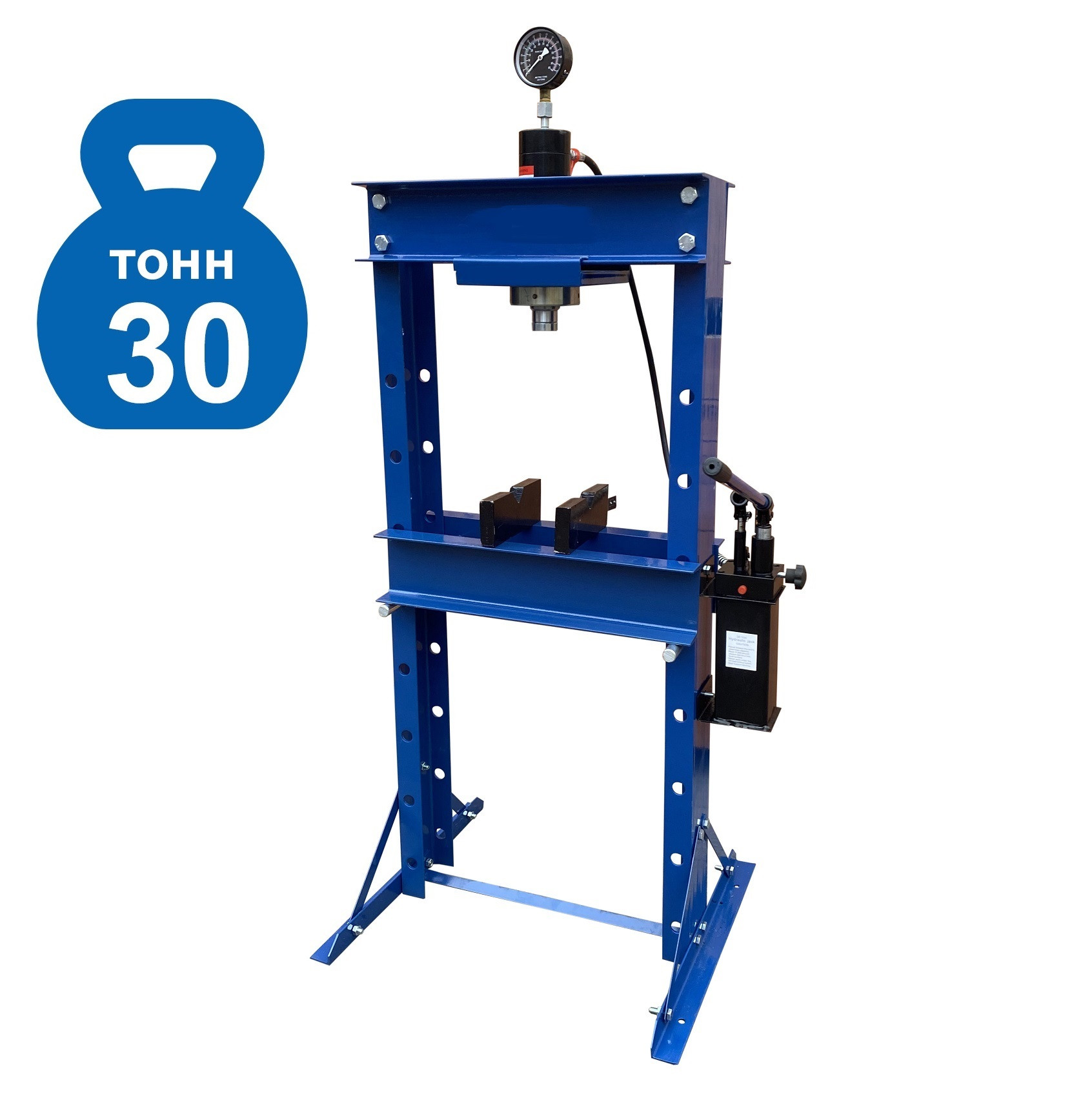 - Пресс укомплектован гидравлическим ручным насосом с максимальным усилием 30т.