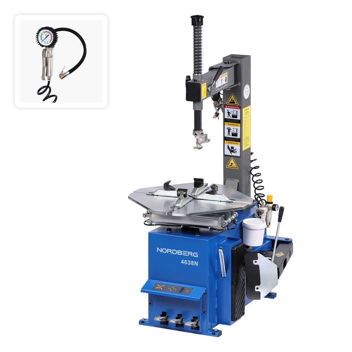 NORDBERG 4638N(B) 380 — предназначен для монтажа и демонтажа стандартных, низкопрофильных, камерных и бескамерных шин легковых автомобилей и легких грузовиков. Работает с дисками различных сплавов.