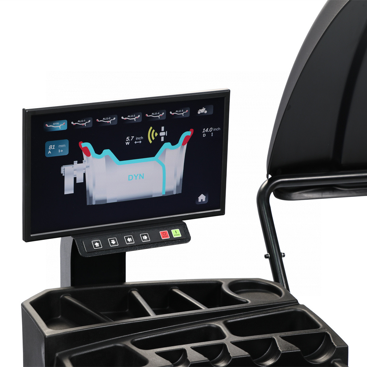 - Ультразвуковой датчик для измерения ширины колеса, используется при автоматическом бесконтактном измерении;