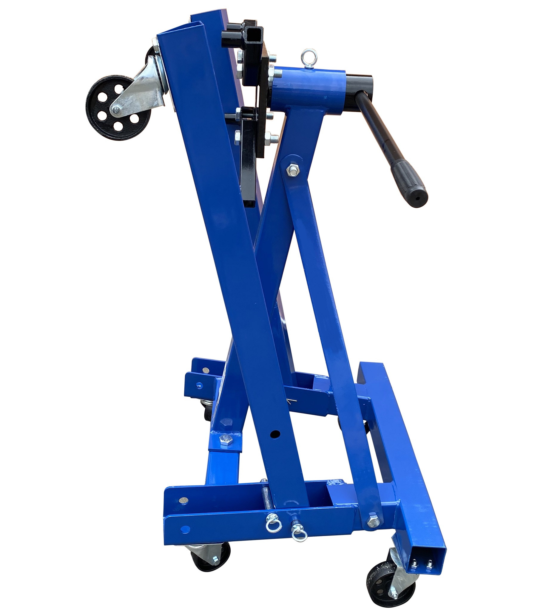 Складной. Для сборки / разборки цилиндропоршневой группы 6-х цилиндровых ДВС с навесным оборудованием и 8 цилиндровых без навесного оборудования г/п. до 907 кг. Позволяет вращать двигатель на 360°. С 4-мя регулируемыми кронштейнами для удобства вывешивания и обслуживания ДВС легковых авто. Оснащен П - образной рамой с 6 поворотными колесами.