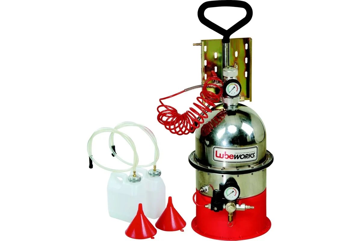 Установка по замене и прокачке тормозной жидкости и сцепления, с набором адаптеров Lubeworks 1788001 станет прекрасным помощником для профессионалов в сфере ремонта и обслуживания автомобильного транспорта различных марок и моделей. Прибор позволит легко и быстро выполнить работу с максимальным качеством результата.