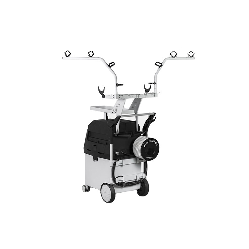 Новая рабочая станция для профессионального пылесоса KS 300 обеспечивает еще большую поддержку оператора. Включая два поворотных кронштейна для всасывающих шлангов, две полки, два дополнительных держателя инструментов и набор крючков, эта рабочая станция гарантирует мобильность и гарантирует, что все необходимые инструменты, расходные материалы и аксессуары всегда будут под рукой во время работы.