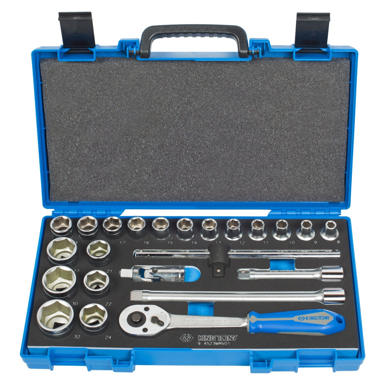 Набор головок KING TONY 4523MRV01 включает в себя торцевые головки и принадлежности, предназначен для монтажа и демонтажа крепежных узлов различных изделий, устройств и агрегатов.