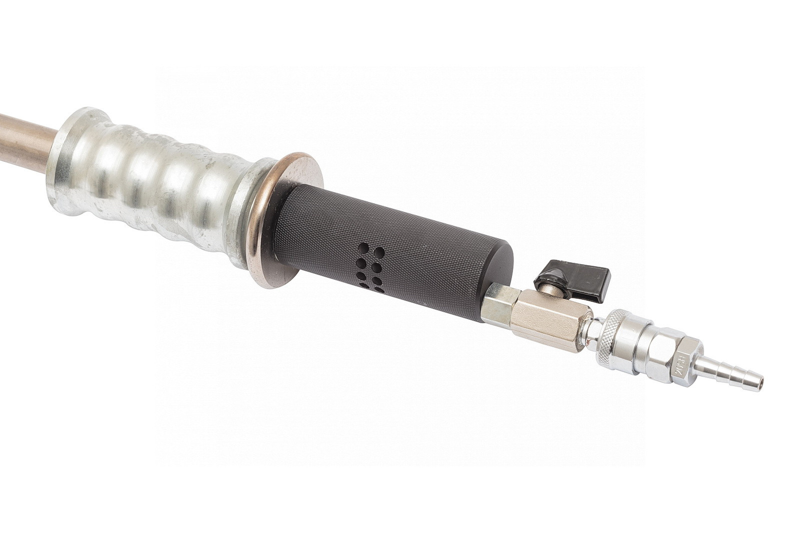 Для работы обратный молоток необходимо подключить к источнику сжатого воздуха при помощи быстросъемного соединения. Необходимое давление 6-8 бар.
