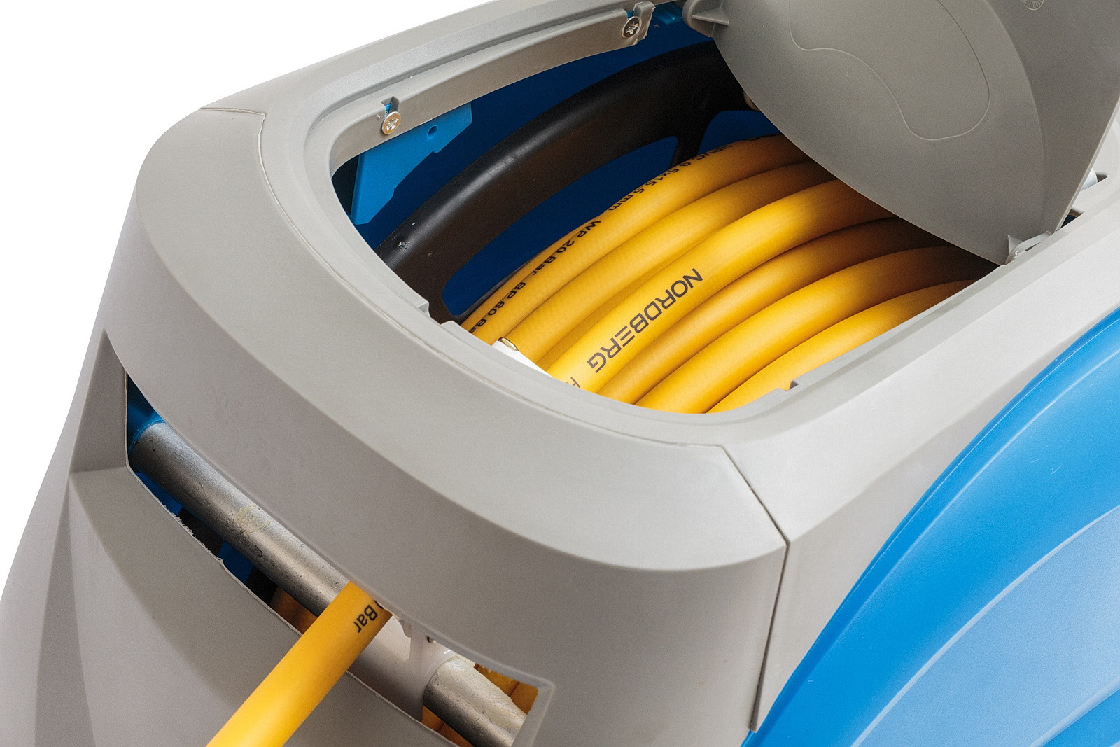 Катушка закрытая окрашенная с шлангом 150 бар, длиной 10 м, резьба 1/2", RAASM, 8450.401