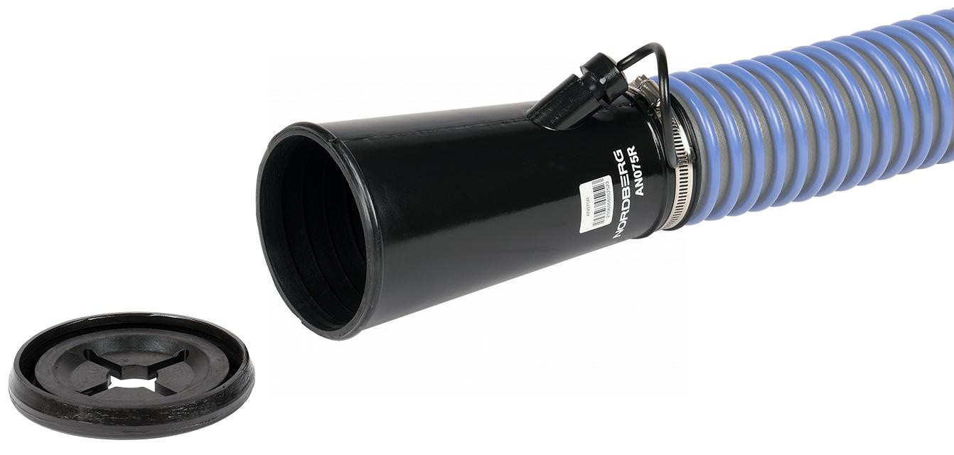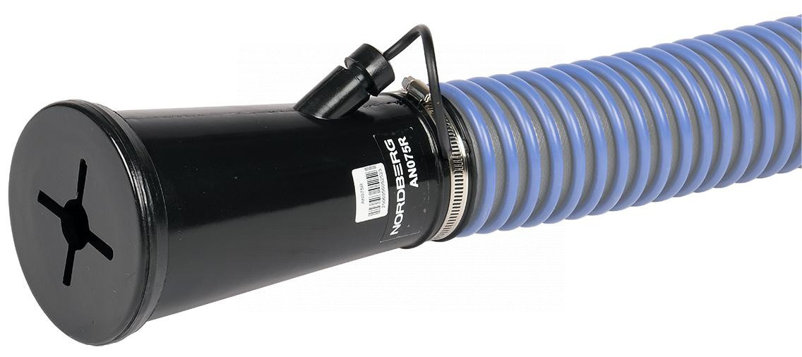 Круглая резиновая насадка на шланг NORDBERG AN075R применяется в системах удаления выхлопных газов непосредственно от выхлопной трубы автомобилей, находящихся внутри закрытого помещения автосервисов или станций технического обслуживания.