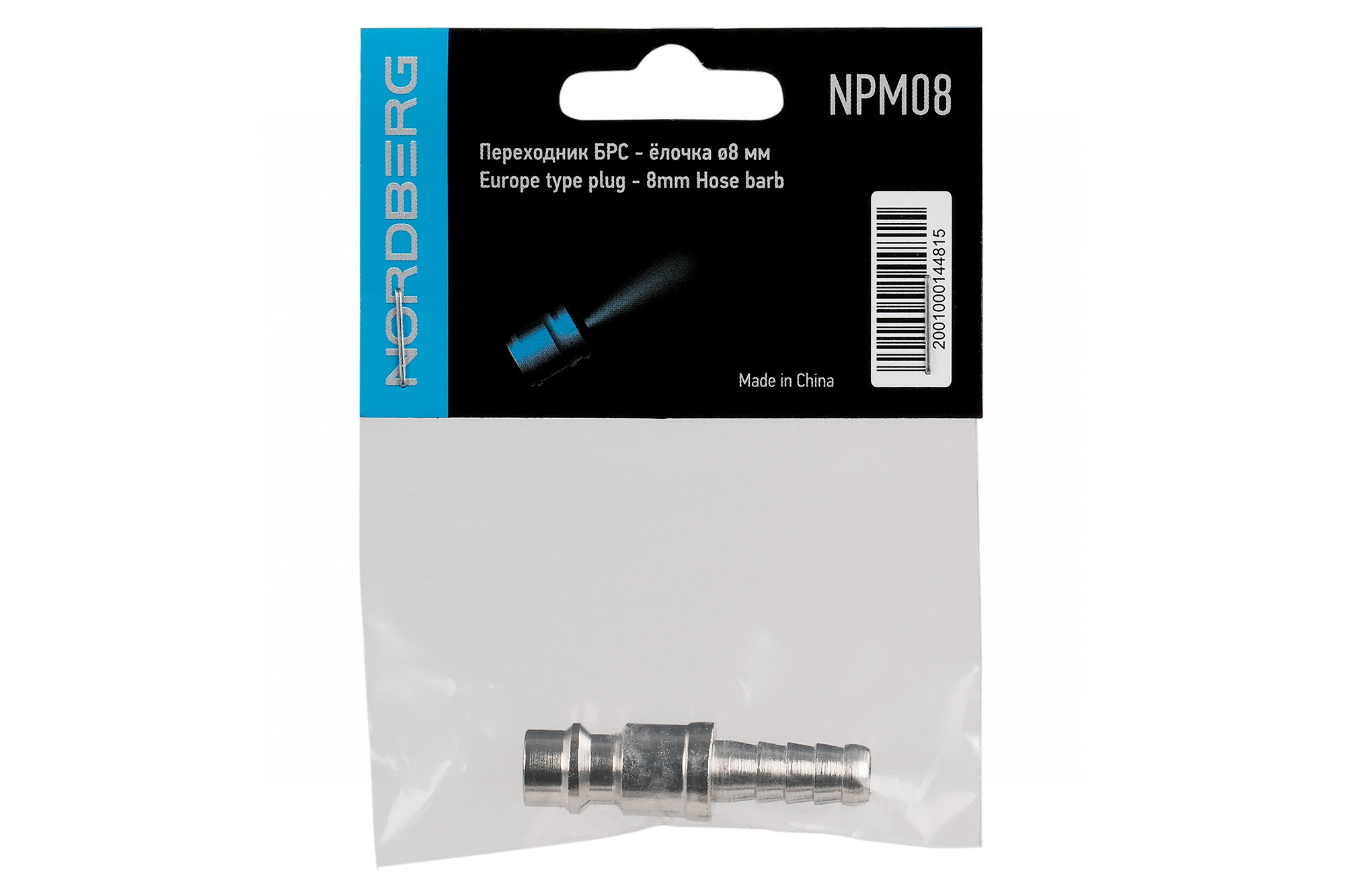 Переходник NORDBERG NPM08 быстросъемный "папа" - елочка D 8 мм предназначен для соединения элементов пневмолинии и пневматического инструмента, там, где требуется частая и быстрая замена пневмоинструмента.