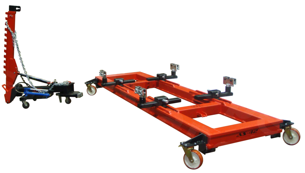 Силовое устройство является самым мощным и удобным инструментом среди одноклассников. Специально разработанная система шарниров наделяет этот агрегат свойствами движения руки человека и позволяет мастеру выбирать направление тяги с особой точностью. Одновременно с этим, данное устройство очень компактно и остается самым надежным в эксплуатации и простым в обращении оборудованием. Для удобства в передвижении по цеху и к месту работ, оно оснащено усиленными поворотными колесами. Фиксация к стапелю осуществляется одним клином в любой точке рамы. Прочная конструкция с помощью специальной оснастки позволяет использовать устройство для создания тяги вверх/вниз. Силовые устройства данного типа за годы эксплуатации достойно зарекомендовали себя в работе. Данная модель изготовлена в духе лучших образцов европейских производителей и дополнена разработками с учетом опыта и пожеланий Российских мастеров кузовного дела.