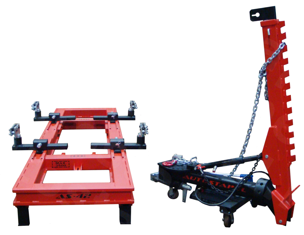 Стойки для крепления автомобиля имеют клиновую систему фиксации к раме и обеспечивают широкий диапазон позиционирования, что значительно ускоряет установку на стапель транспортных средств с разными габаритами, делая выполнение этой операции быстрой и удобной. Конструкция стоек не имеет аналогов и разработана с учетом опыта и пожеланий мастеров кузовного дела.
