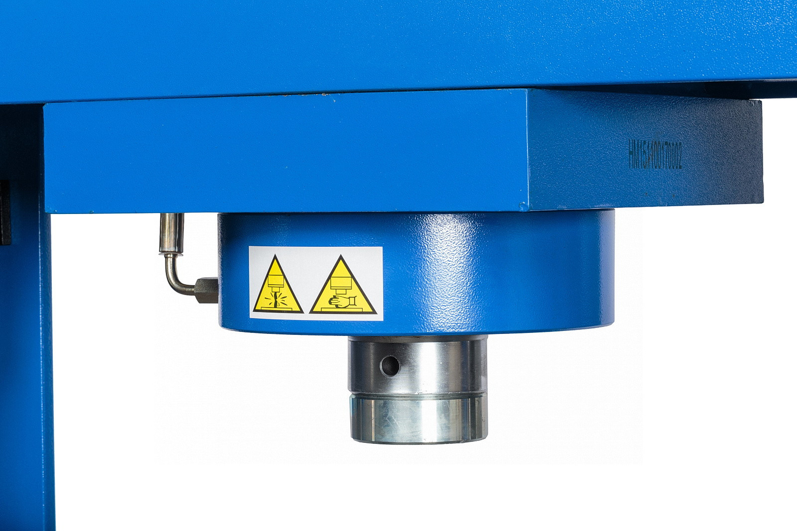 - Регулируемый рабочий стол и перемещение гидравлического цилиндра по оси позволяет работать с крупногабаритными деталями.