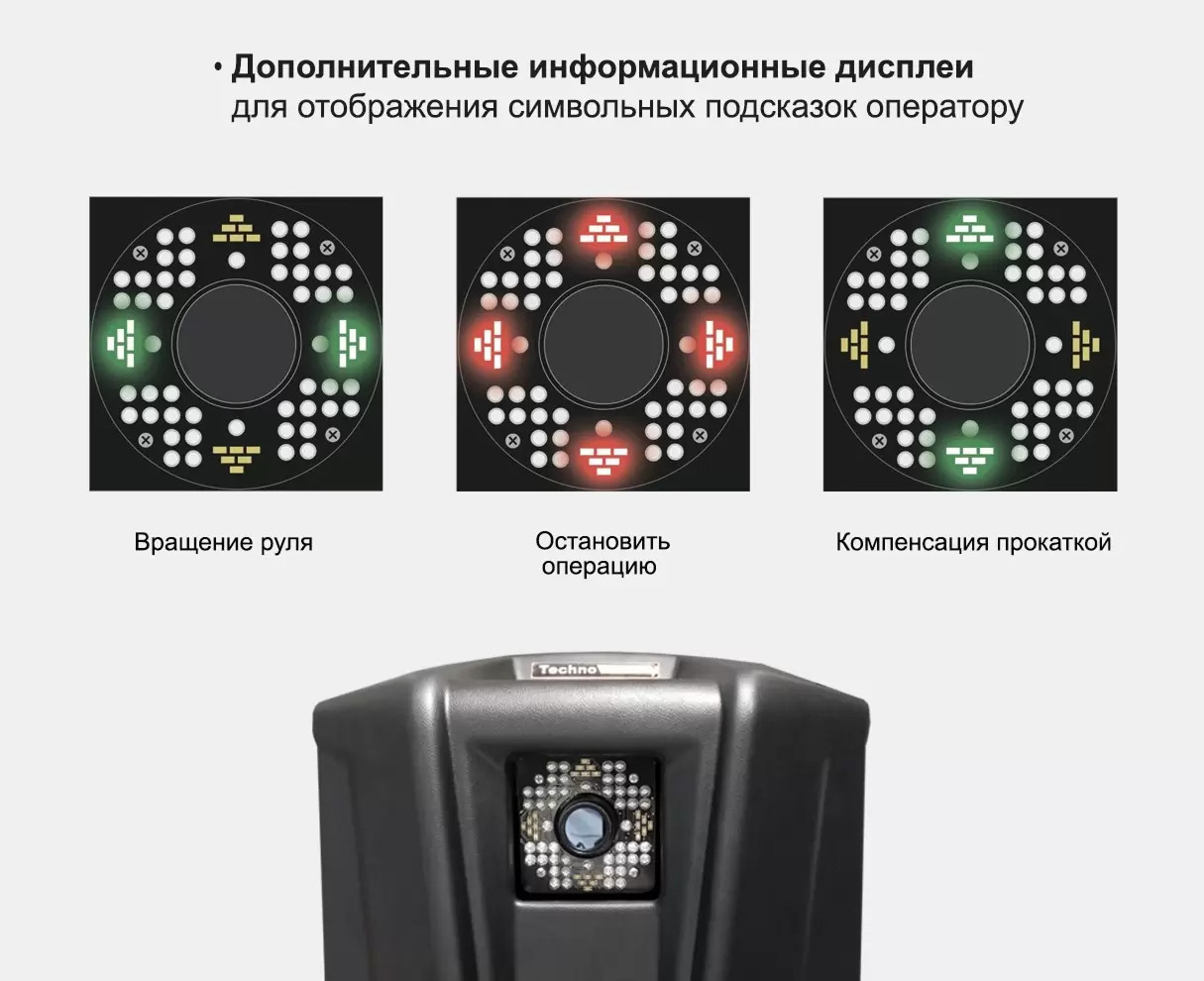 - Благодаря механизму синхронизации, ось измерительного блока всегда совпадает с осью колес автомобиля.