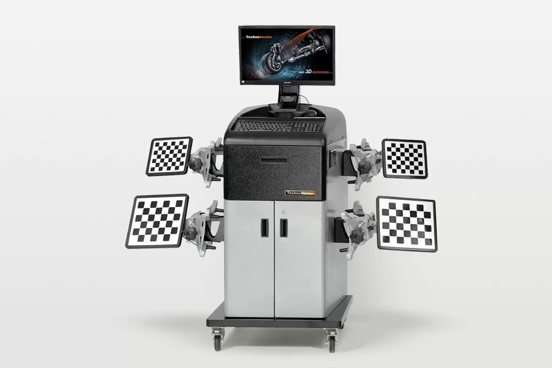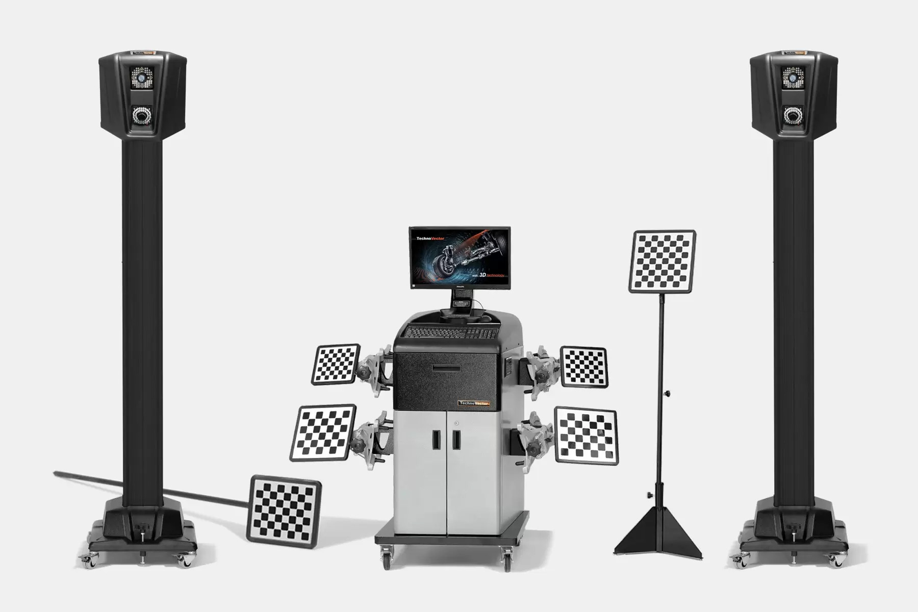Функционирование приборов основано на измерении угловых параметров, определяющих положение осей и колес автомобиля с помощью видеокамер и плоских мишеней с градиентным рисунком.