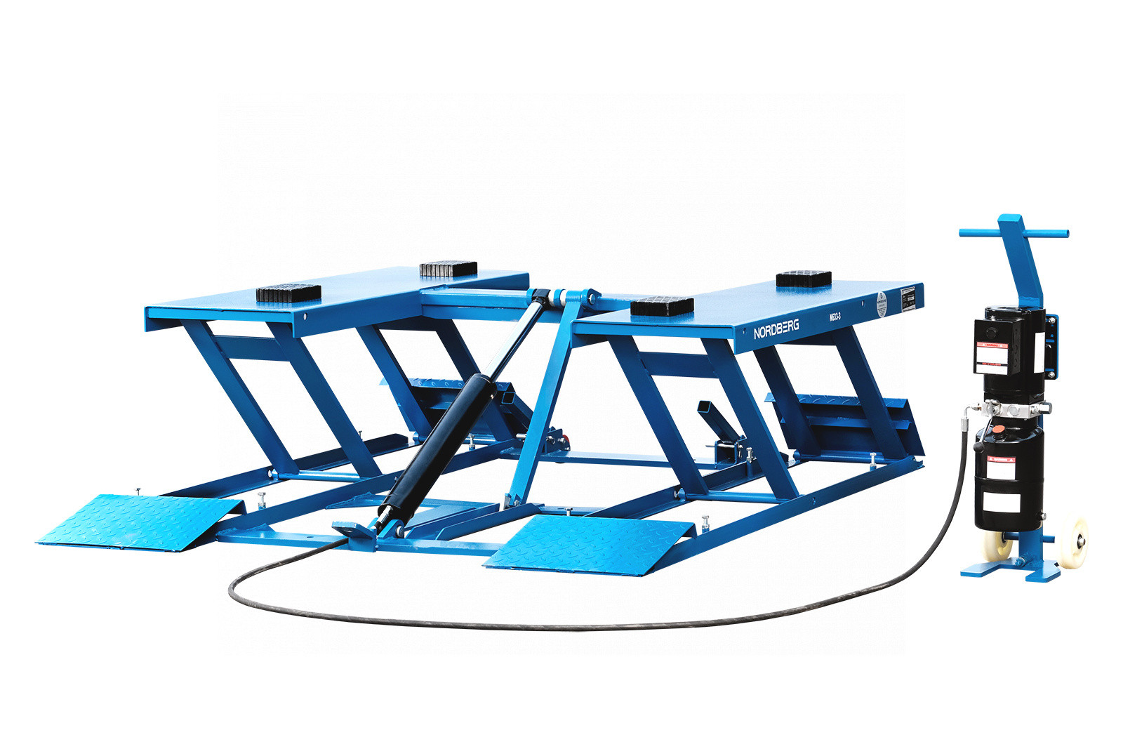 Универсальный подъемник для шиномонтажных мастерских и зоны приемки, может использоваться и как мобильный, без фиксации к полу, так и закрепленным на стационарном посте NORDBERG N633-3B