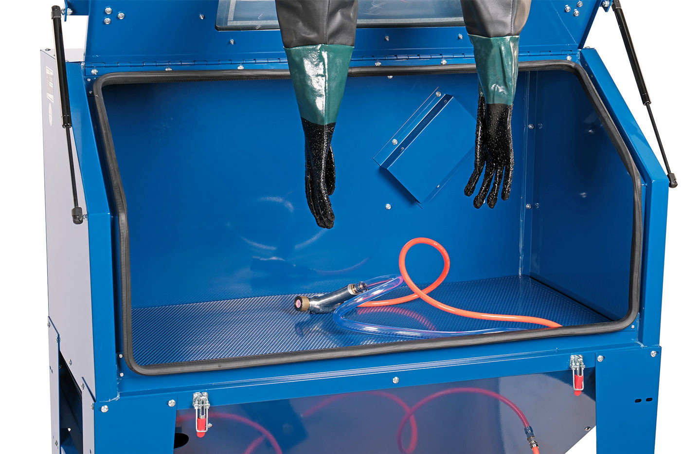 Пескоструйная камера NORDBERG NS4 Предназначена для обработки воздушно-пескоструйным способом поверхностей изделий, снятия ржавчины, грунта, слоев краски, матирования. Работает от сжатого воздуха. Позволяет производить обработку без создания специальных площадок и дополнительной защиты оператора.